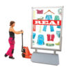 Detta skyltställ lämpar sig väl i lite trängre utrymmen. Många mäklare och frisörer använder sig av detta skyltställ. Finns i färgerna vit och svart.